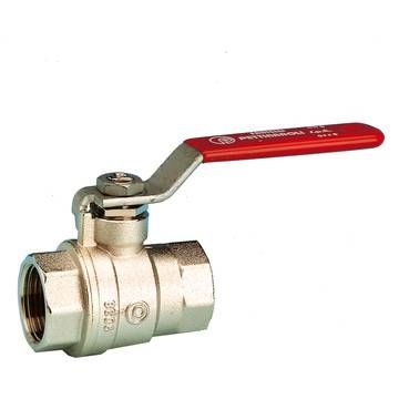 Kuglehane ”New Compact” med fuldt gennemløb. Muffe/muffe. Rødt stålhåndtag.