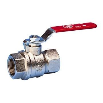 Kraftig kuglehane med fuldt gennemløb. TEA overfladebehandling. Muffe/muffe. Rødt stålhåndtag.