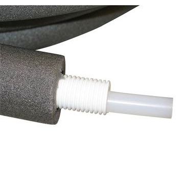 Hvidt tomrør med blå og rød streg og isolering. Leveres i ruller.