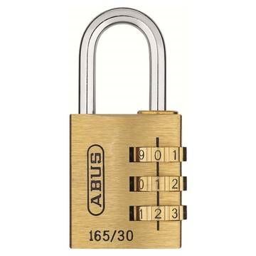 Kodelås i messing med stålbøjle og 3 cifret indstillelig kode.