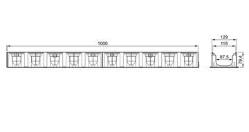 ACO HEXALINE linjedræn, afløbsrende uden rist og udløb. Kan kombineres med et vælg af forskellige risteløsninger i belasningsklasse A15 - 1,5 tons.