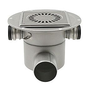 Afløbskål med vandret Ø75 mm afløb og 3 sideindløb samt smøremembran. Til beton & fliser.