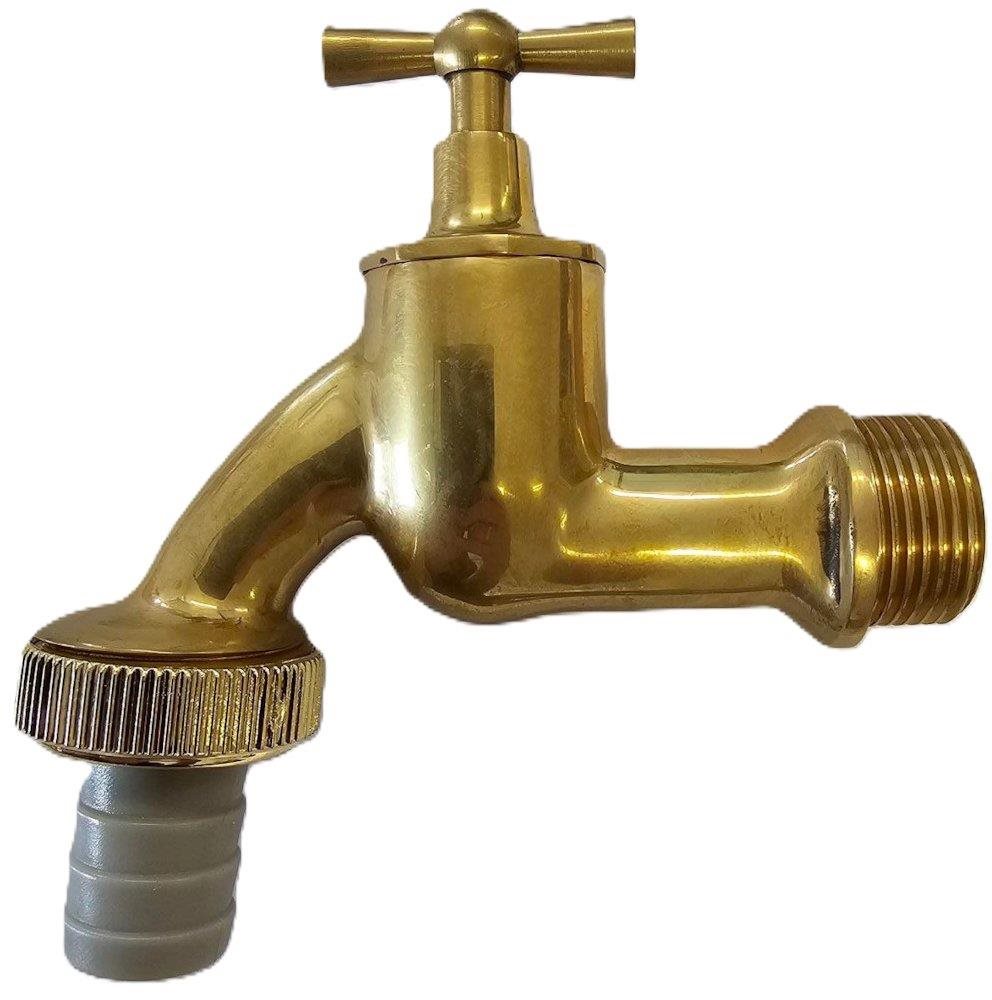 Aftapningsventil 3/4" i poleret messing og m/ slangestuds i hvid plastik.