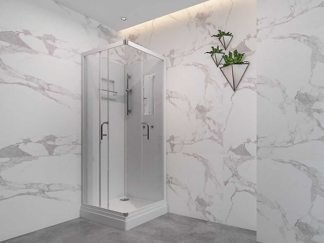 Alterna Luxor brusekabine 90 cm med skydedører hvid / klar glas