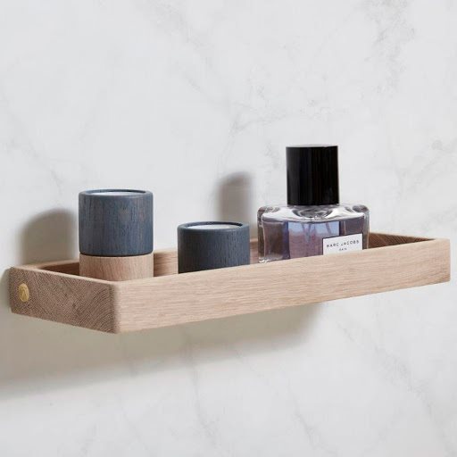 Den kan bruges i køkkenet til krydderier, i badeværelset til bl.a. parfume eller i stue og andre rum, hvor den er perfekt til mindre pyntegenstande. Hylden er designet i larkeret egetræ. Mål: 32 x 12 x H3,5 cm