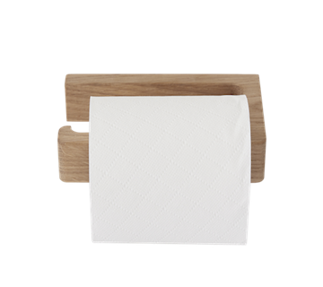 Elegant toiletrulleholder i lakeret egetræ, som har et tidsløst design, der gør, at den er perfekt tilbehør til ethvert badeværelse.