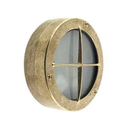 Andromeda Lighting rund rustik skotlampe med beskyttende gitter i støbt messing -  IP54 G9 max. 40W.