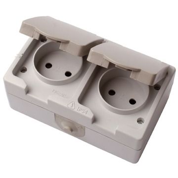 IP54 stikkontakt dobbelt vandret med jord stænktæt grå u/afbryder.