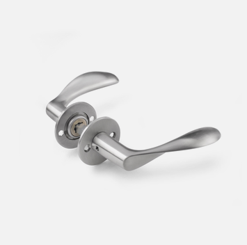 Dørgreb - AJ 111 - matforniklet - Arne Jacobsen design. Med fastsiddende kuglelejerosetter. Leveres med tx10 pinolskruer og bøsningsskruer. Dørgreb med centerafstand 30 mm leveres også med styrebrik til trædøre.