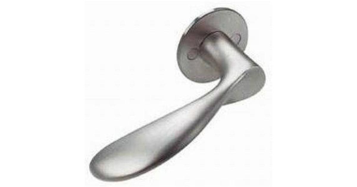 Dørgreb - AJ 97 - matforniklet - Arne Jacobsen design. Med fastsiddende kuglelejerosetter. Leveres med tx10 pinolskruer og bøsningsskruer. Dørgreb med centerafstand 30 mm leveres også med styrebrik til trædøre.