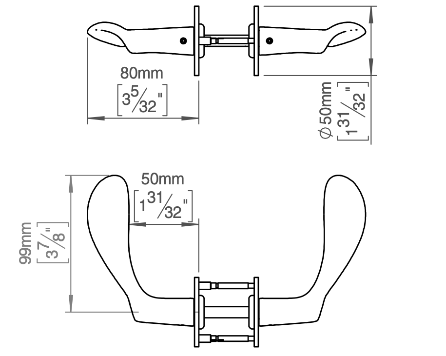 Dørgrebet leveres med 38 mm centerafstand til de gennemgående skruer igennem låsekassen