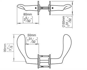 Centerafstand 38 mm benyttes primært til yderdøre med stanglåse, hvor dørgrebet skal løftes op ved aflåsning og der benyttes en profilcylinder over dørgrebet