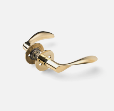 Dørgreb - AJ 111 - messing - Arne Jacobsen design. Med fastsiddende kuglelejerosetter. Leveres med tx10 pinolskruer og bøsningsskruer. Dørgreb med centerafstand 30 mm leveres også med styrebrik til trædøre.