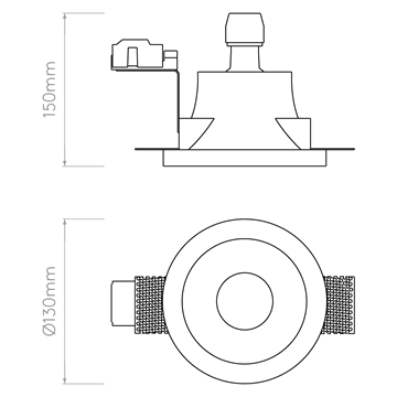 Elegant indbygningspot, der fungerer perfekt til dig, som ikke ønsker frithængende lamper. Må ikke monteres direkte i isoleret loft, og Safebox anbefales. Bemærk: ved montering i etageadskillelse bør downlightkabel blive krympet og muffet på spottet.