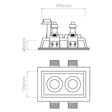 Indbygningsspot af hvid gips. Må ikke monteres direkte op i isoleret loft, anvend derfor gerne Safebox.