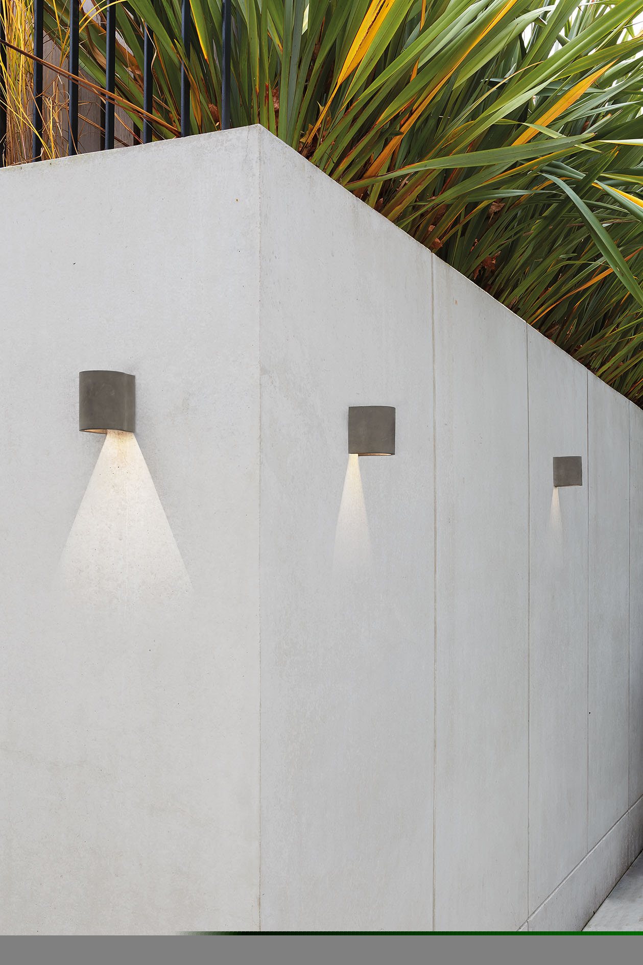 Den vægmonteret udendørslampe er støbt i beton og kan anvendes i alle slags miljøer, også tæt på kystområder.