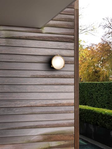 Den vægmonteret udendørslampe er i massiv antik messing og er velegnet til alle miljøer, også ved kystområder. Lampen vil med tiden få en nærmest sort patina - hvis ikke dette ønskes, så kan den poleres for at få den oprindelige farve. Der medfølger samtidigt 10 års garanti ved konstruktions- og tæringsfejl. .