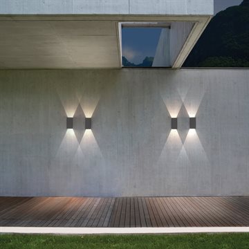 Den vægmonteret udendørslampe passer til alle slags facader.