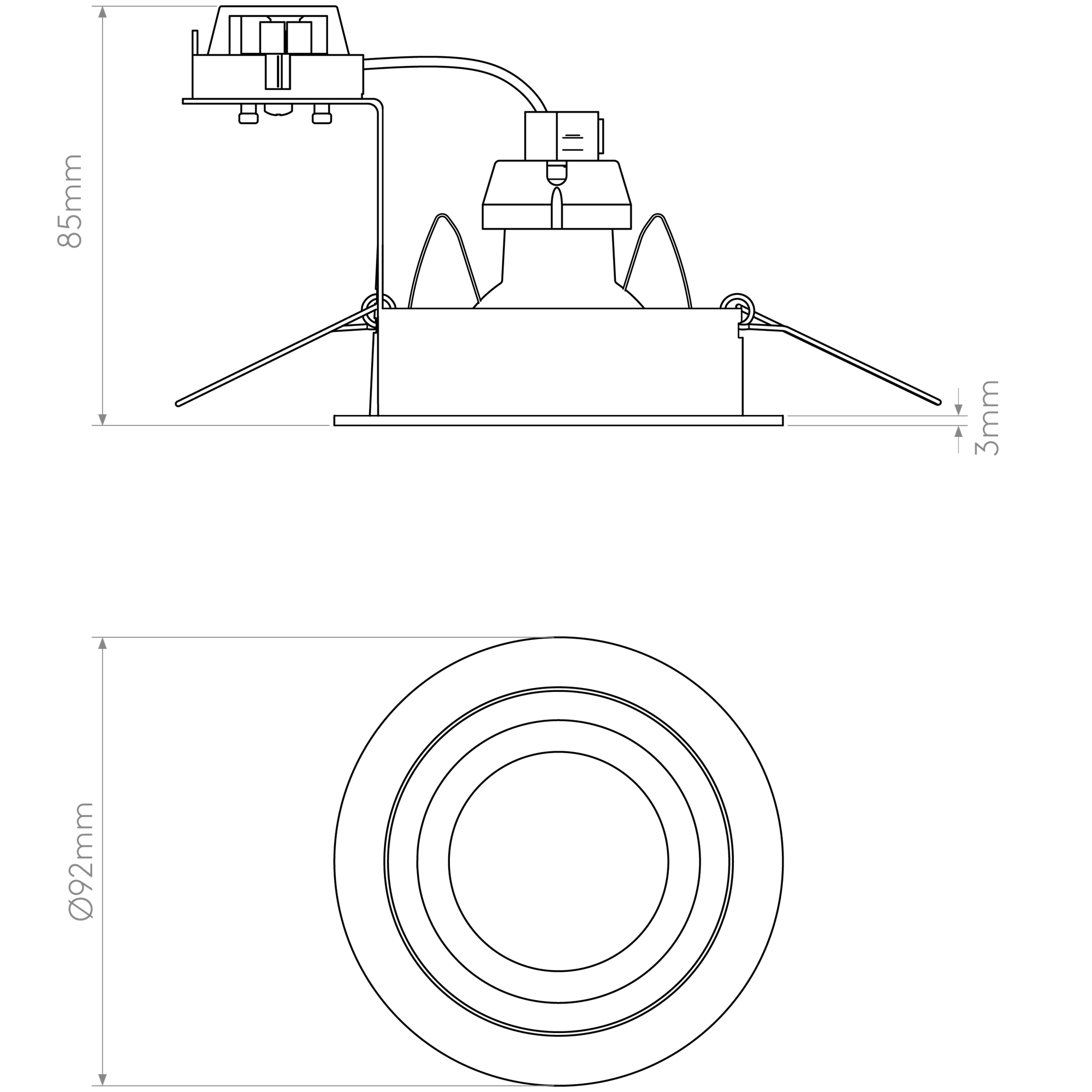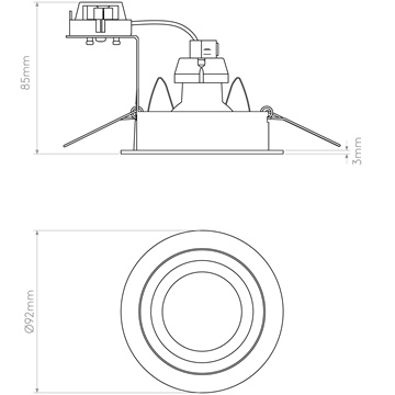 Indbygningsspot i mat hvid. Må ikke monteres direkte op i isoleret loft, anvend derfor gerne Safebox.