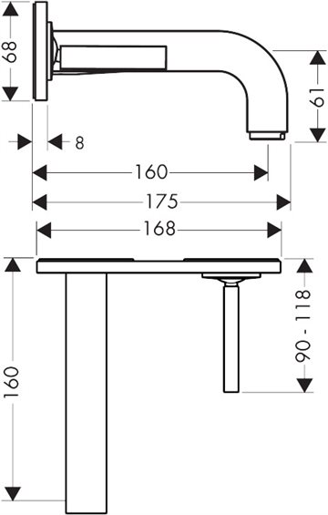 AXOR Citterio 1-grebs håndvaskarmatur til 2-huls indbygning i væg med 160 mm tud og plade