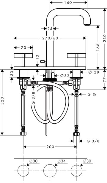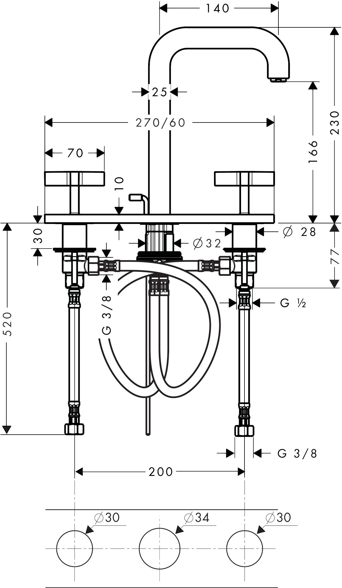 AXOR Citterio 3-huls håndvaskarmatur, M. bundventil, Krom