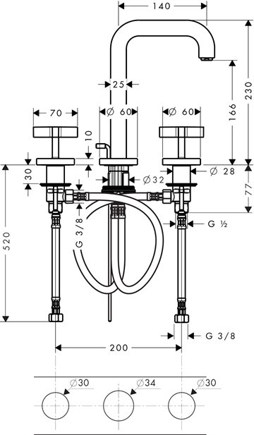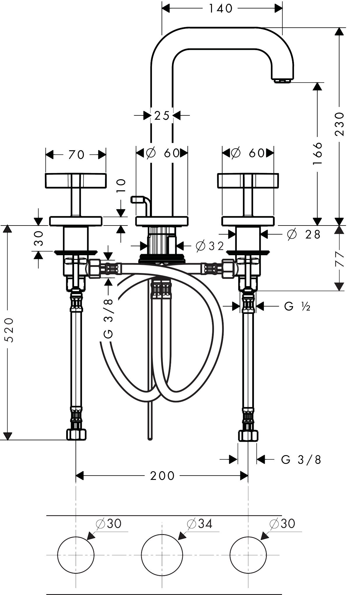 AXOR Citterio 3-huls håndvaskarmatur med krydsgreb, M. bundventil, Krom