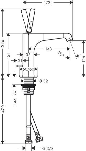 AXOR Citterio E håndvaskarmatur, M. siveventil, Krom