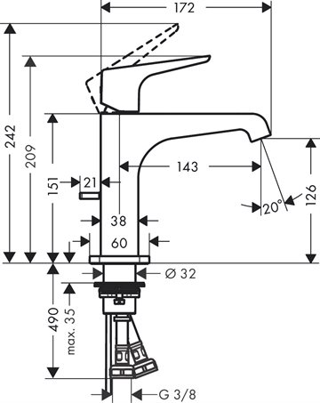• består af: 1-grebs håndvaskarmatur