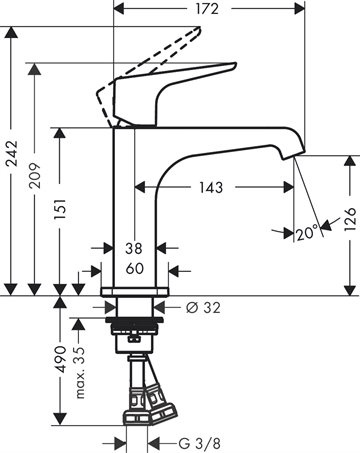 AXOR Citterio E håndvaskarmatur med vandret greb & siveventil, Krom