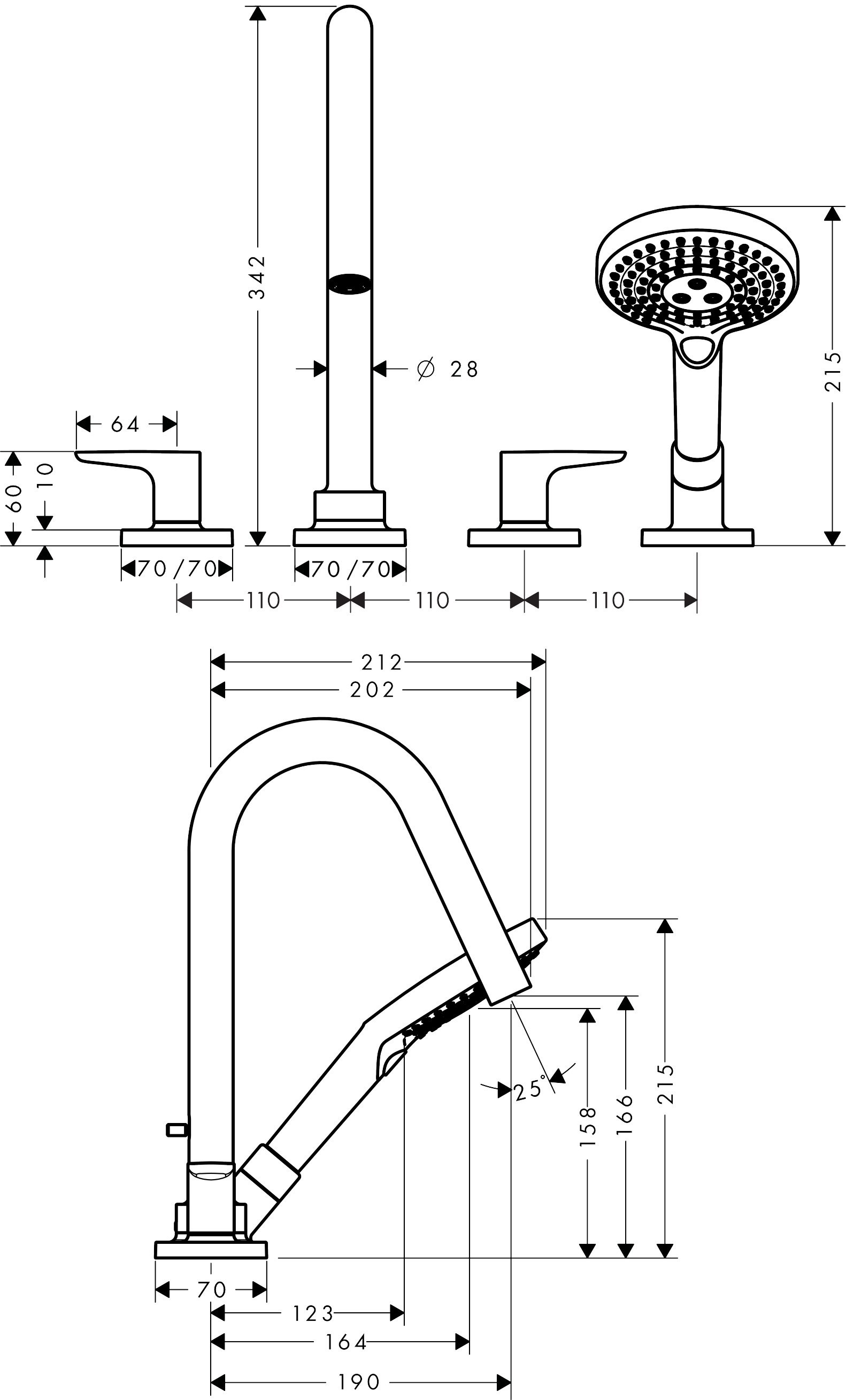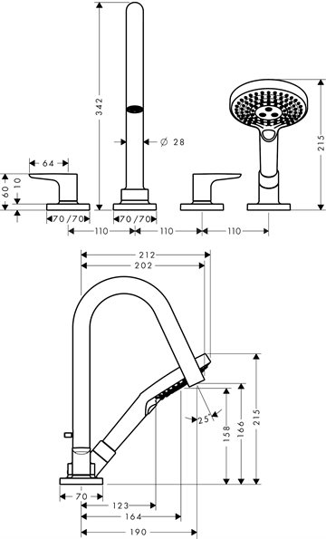består af: 4-huls kararmatur til flisekant, håndbruser, bruserholder