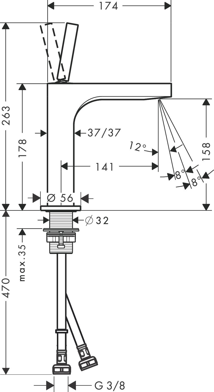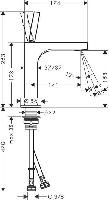 AXOR Cittero håndvaskarmatur, M. siveventil, Krom