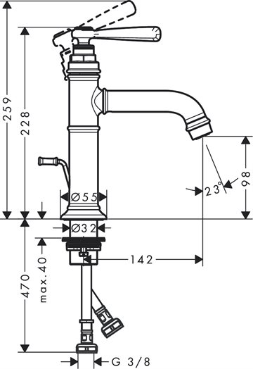 AXOR Montreux 100 håndvaskarmatur M. bundventil, Krom
