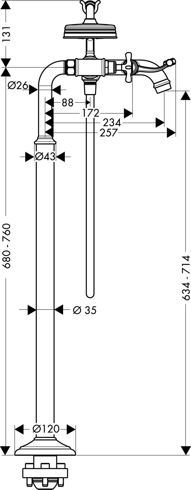 AXOR Montreux 2-grebs kar-/brusearmatur karsøjle til gulvmontering med krydsgreb - krom