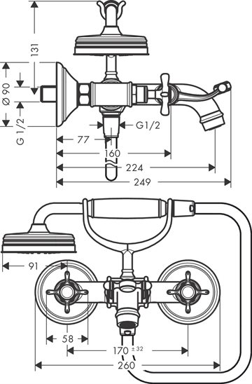 AXOR Montreux 2-grebs kar-/brusearmatur med krydsgreb
