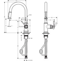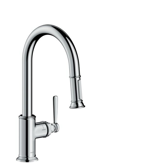 AXOR Montreux køkkenarmatur med udtræksbruser - Den udtrækbare tud giver stor brugervenlighed og komfort, når køkkenopgaverne ved og omkring køkkenvasken står på.