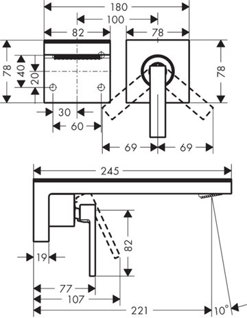 • består af: 1-grebs håndvaskarmatur til indbygning i væg, plade, bundventil