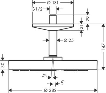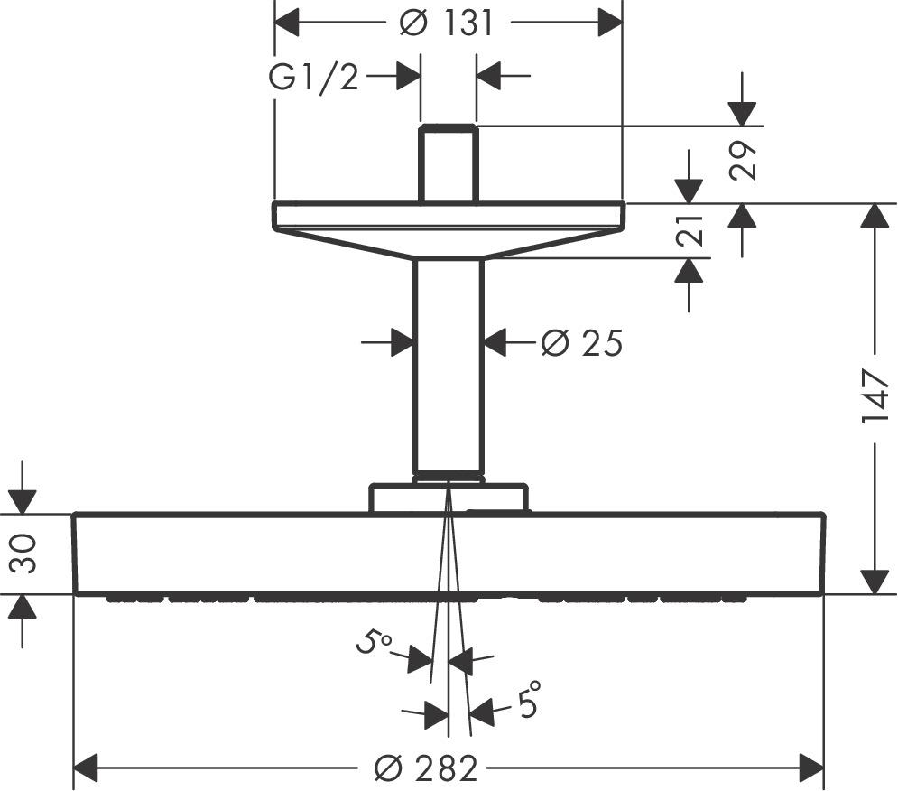 AXOR One Hovedbruser 280 1jet med lofttilslutning i mat sort - 1jet betyder, at hovedbruseren leverer en stråletype kombineret.