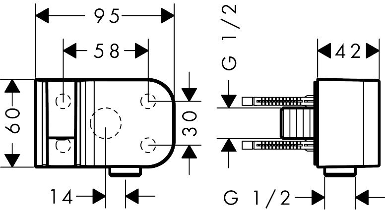 Tilsluttes 1/2" pexdåse i væg og til 1/2" bruseslange.
