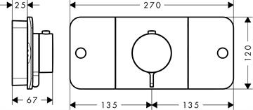 Med dette termostat indbygningsbrusebatteri med omskifter (2 udtag) fra Axor One kan vandet ledes to steder hen, det kan være til en hovedbruser og en håndbruser eller til en kartud.