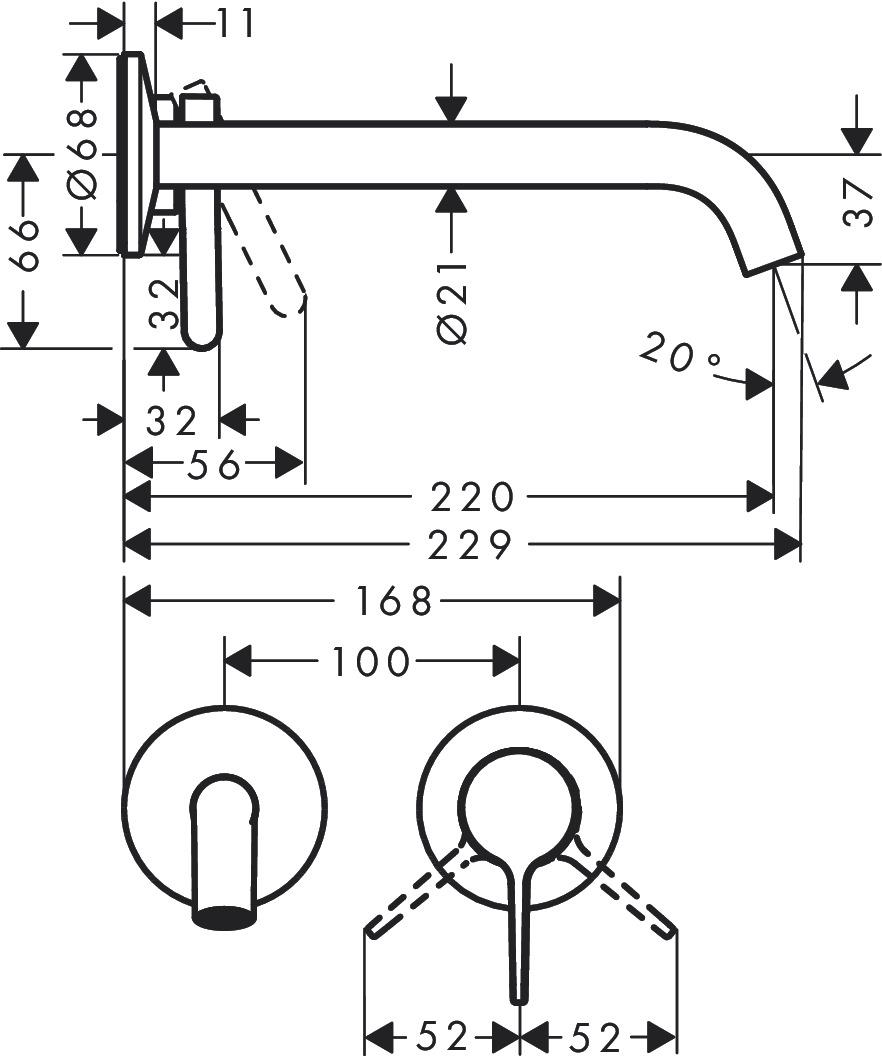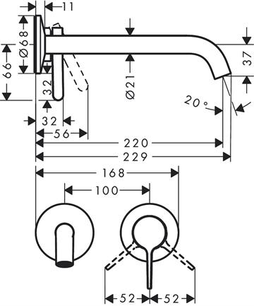 Består af: 1-grebs håndvaskarmatur til indbygning i væg, bundventil