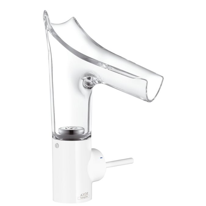 AXOR Starck V håndvaskarmatur 140, M. glastud & siveventil, Krystalglas / hvid