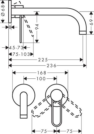Axor Uno 2-H HV t/væg 225mm bøjlegreb BN