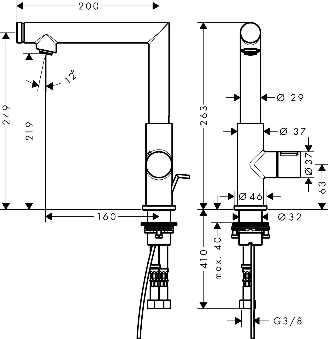 Axor Uno 220 Select HV sv.tud m/lov. krom