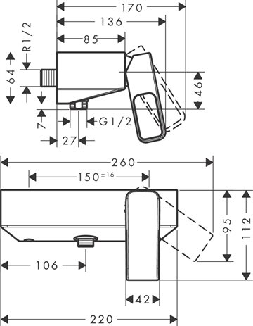 stikmål: 150 mm ± 16 mm