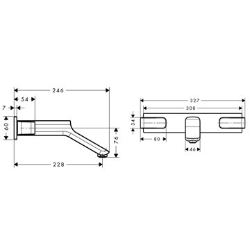 • består af: 3-huls håndvaskarmatur til vægmontering, bundventil