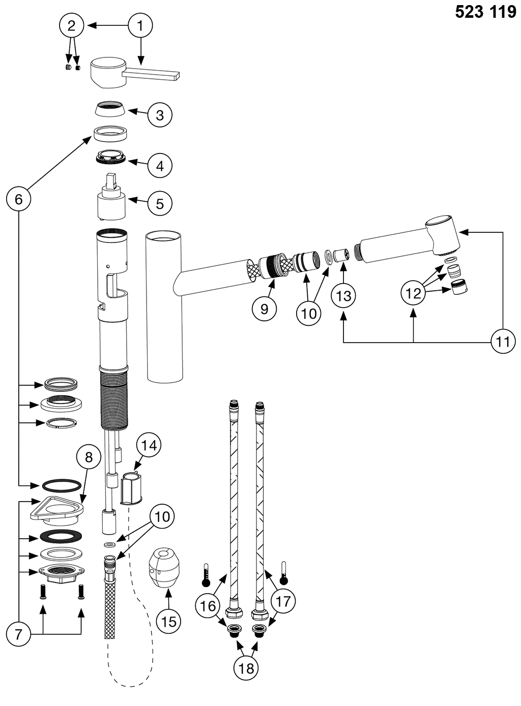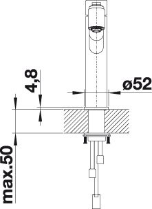 Højt placeret tud - god arbejdshøjde under udløbstuden