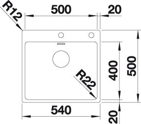 Blanco Andano 500-IF/A MXI rustfrit stål køkkenvask, 54x50 cm til nedfældning eller planlimning