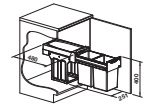 Kompakt affaldssystem til fleksibel montering i bunden af køkkenskabet med 2 spande à 15 liter.  Affaldssystemet har glidende udtræk med fuldt udtræk hvorved spandene nemt kan tilgås.