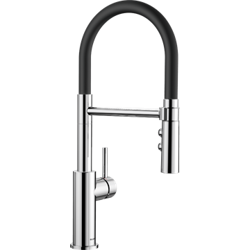 Blanco Catris-S Flexo er en stilfuld og professionel køkkenvandhane, der kombinerer funktionalitet med et moderne design. Den fleksible udtrækstud og Dual Spray-funktionen giver maksimal bevægelighed og gør det nemt at skifte mellem en blid strøm og en kraftigere spray – perfekt til både madlavning og rengøring.