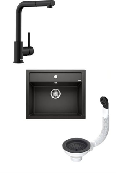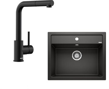 Blanco køkkenpakke m/Dalago 6 UX sort køkkenvask til nedfældning & Mila-s matsort køkkenvandhane.